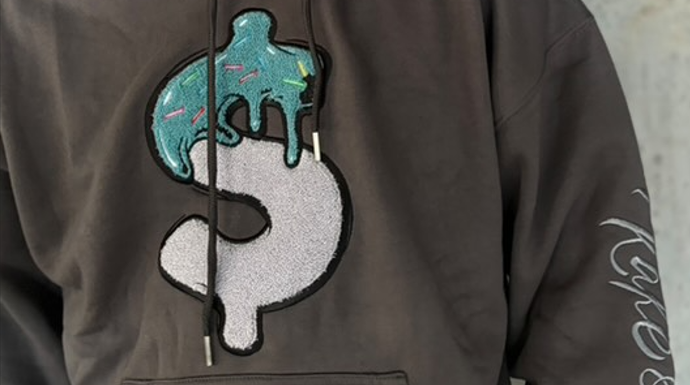 Sleeves: 3D embroidered “Kake and Kreme” branding